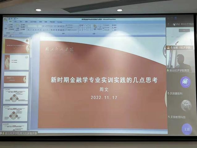在下午的主题报告环节,学院周文博士作了题为《新时期金融学专业实训实践的几点思考》,向与会专家学者汇报了yL23411永利官网登录多年来在金融学专业实训实践方面的探索情况,结合新时期金融行业的发展趋势,深入分析了金融学专业实训实践面临的挑战,和与会同行进行了广泛、有益的交流。