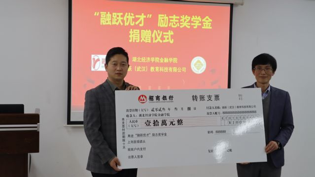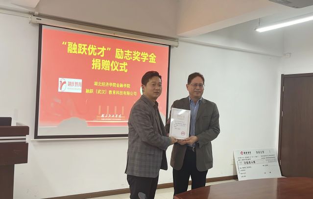 3月10日下午,融跃(武汉)教育科技有限公司-yL23411永利官网登录校企合作暨“融跃优才”励志奖学金捐赠仪式在学院明辨楼320会议室举行。融跃教育科技有限公司董事长高磊、融跃教育武汉分公司副总经理刘锐、融跃教育武汉分公司高校合作总监严松、融跃教育武汉分公司运营总监李旭、学校合作发展处处长宋健、学校合作发展处副处长晁悦、学院党委书记姜璐、副院长周文,部分教师代表和学生代表等参加了本次捐赠仪式。捐赠仪式由学院党委副书记高师主持。