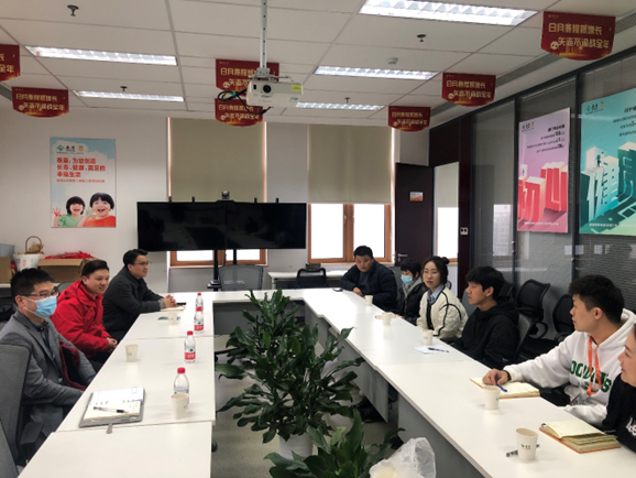 周文一行首先来到位于金融港三路的泰康人寿,看望在这里已进行四周实习的8位学生。泰康人寿部门经理王威、学生社会导师蒋迪文主管带领周文一行参观了公司员工生活和工作区,介绍了公司发展情况,并召集相关部门负责、实习生社会导师和实习生进行了座谈。座谈会上,周文介绍了学院专业、人才培养、学生实习实训等情况,部门李经理、朱经理介绍了实习生的工作情况,实习生王宝玲、李美、章恩浩介绍了在公司的实习情况。座谈会上,泰康三星销售冠军、校友龚珺还以自己的成长经历鼓励实习生热爱专业,好好实习,为将来个人发展打下基础。座谈中,双方还就进一步加强学生实习实训和就业等合作进行了沟通。