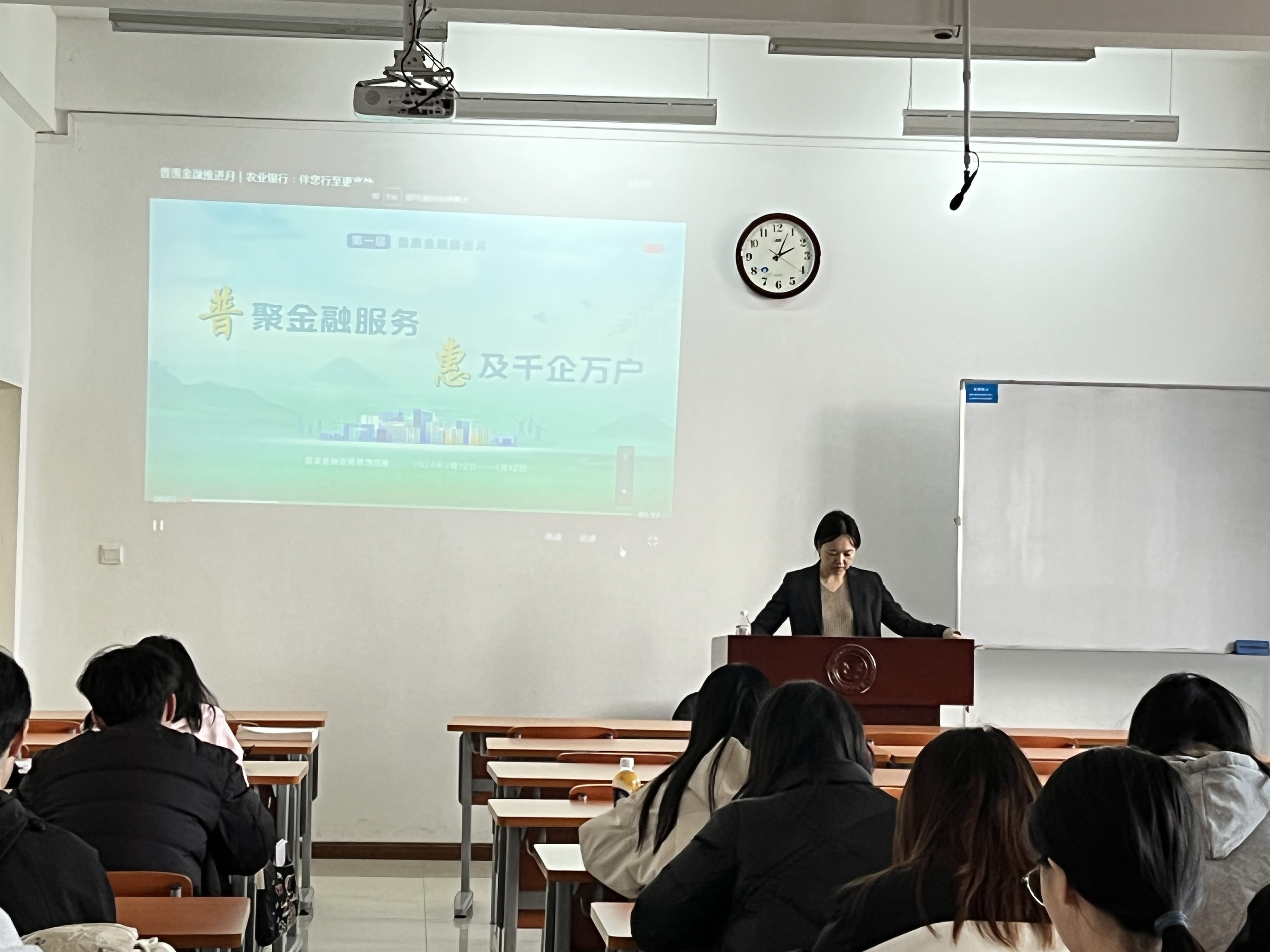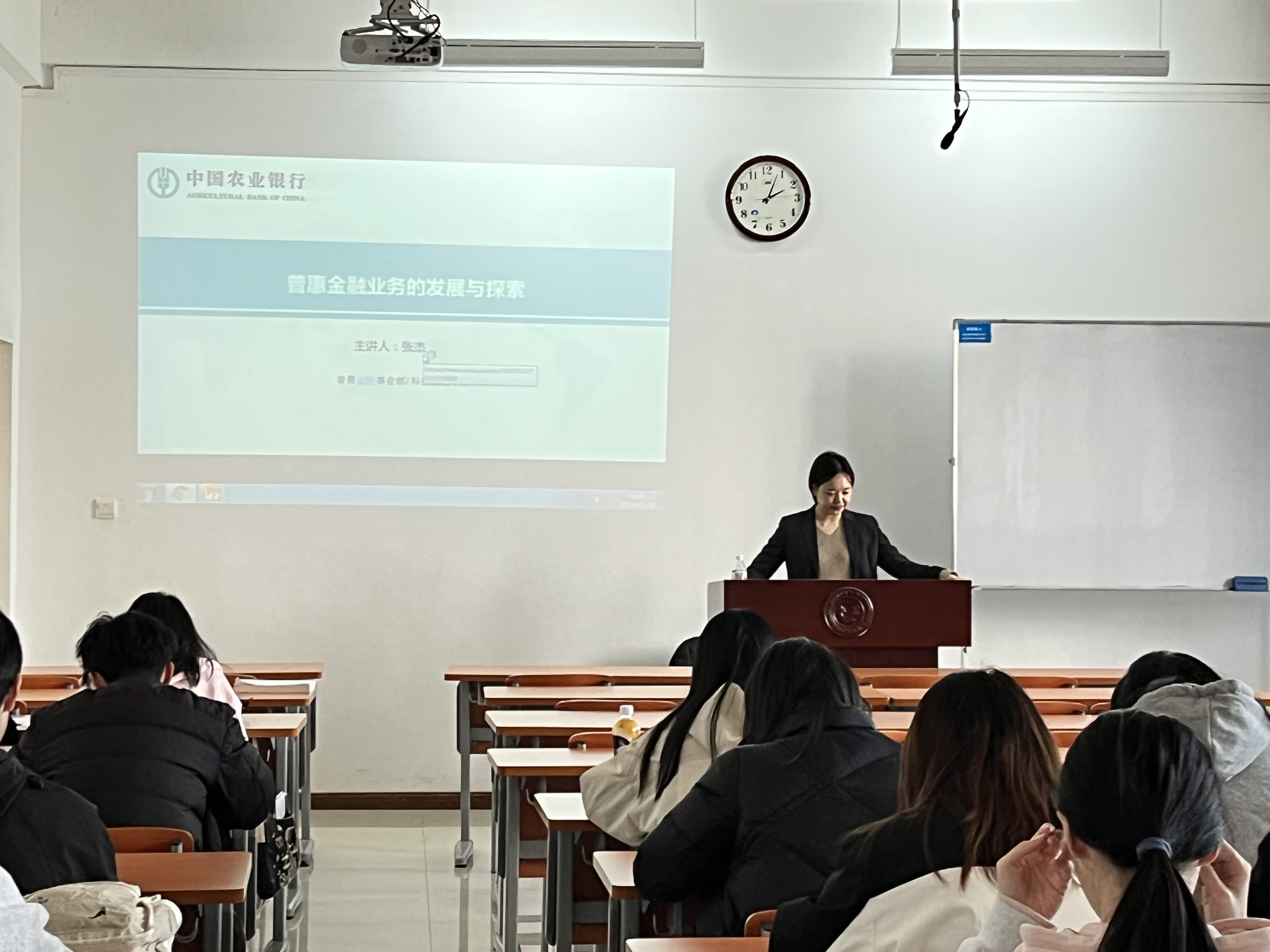 张老师还用自己十余年来银行工作的亲身经历为同学们列举了一个个生动的普惠金融惠民惠企案例,介绍了农行如何通过创新服务模式、加大信贷投放、强化科技赋能等,有效提升了普惠金融服务的覆盖面和满意度,为小微企业和广大人民群众提供了优质的金融服务。