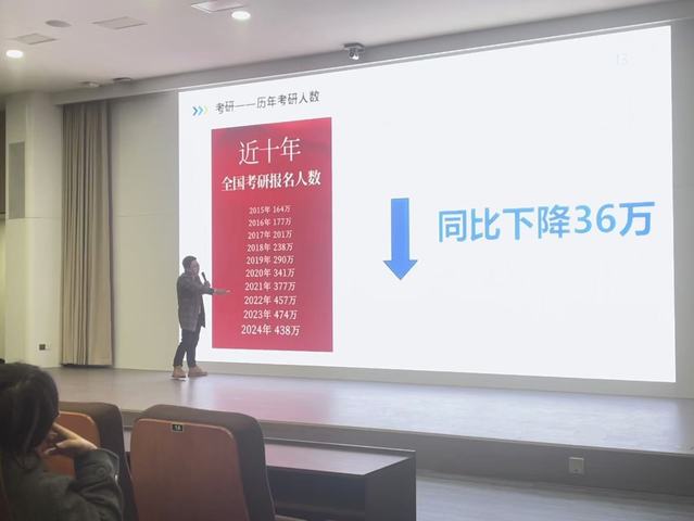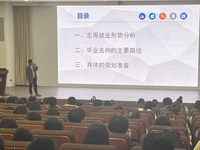 为切实帮助大三学生找准未来毕业去向,有效加强对大三学生考研和就业指导,12月17日,学院举办2026届毕业生考研、就业分析与动员大会。大会由就业专员孙光涛老师主讲,辅导员樊非、黄韵瑾、张一蔓老师参加。