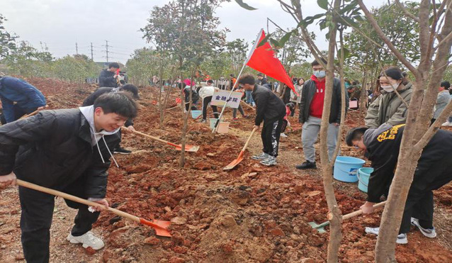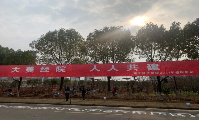 本网讯(通讯员 毛心怡 摄影 鲁曦)为进一步加强校园人文生态环境建设,贴合劳动教育主题,响应爱国卫生运动,我院积极参加学校“大美经院,人人共建”植树活动。出席本次活动的有校领导代表、教师代表,以及各院学生代表。