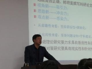 随后许传华院长向同学们讲述了论题的选择以及选题应该注意的问题,他认为科研选题大致来自于社会需要与内心感悟两个层面,使在场的同学们对于选题有了很强的方向性。除此之外,许传华院长还对论题的调查与研究进行了详细的阐述,在场的同学们对论题的调查与研究这一环节有了跟深层次的认识与了解。
