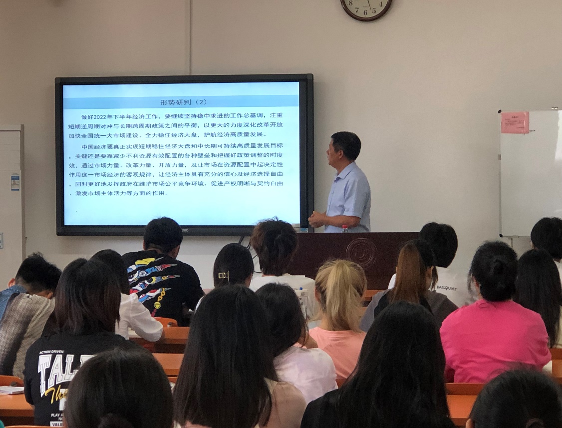 9月19日上午,校党委常委、“湖北名师工作室”主持人许传华教授应邀为学校2021级金融学类专业学生分析当前经济形势。