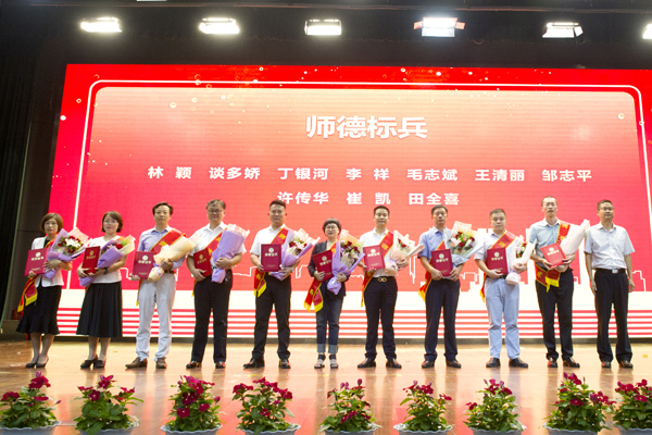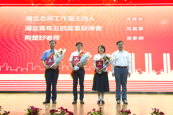 9月10日,学校召开庆祝第35个教师节表彰大会,工作室多名教师受到学校隆重表彰。校长董仕节为“湖北名师工作室主持人”获得者许传华,“优秀研究生导师”获得者林江鹏、许传华、张世晓颁奖。副校长鲁晓成为“教学奉献奖”获得者杨学东,“教学名师奖”获得者彭芸颁奖。副校长何慧刚为“师德标兵”获得者许传华颁奖。党委常委张以林为“班主任标兵”获得者李正旺、“辅导员标兵”获得者高师颁奖。