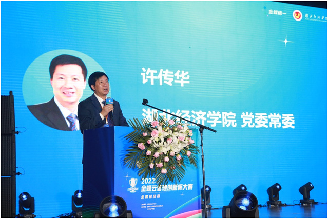 4月16日,2022(第七届)金蝶云管理创新杯大赛在我校举行全国总决赛,校党委常委、“湖北名师工作室”主持人许传华、中国商业会计学会秘书长黄国成、金蝶精一信息科技服务有限公司总经理陈跃、金蝶精一联席总经理兼大赛总裁判长赵治国出席并参加了总决赛相关活动。