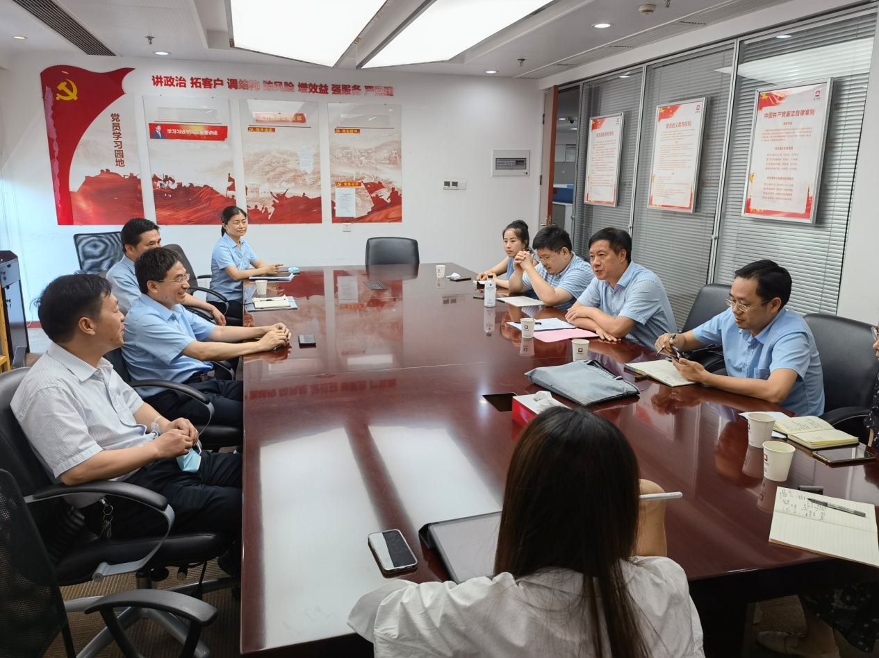 7月14日下午,许传华带领青年博士陈义国、张攀红、万鹏博、何云在湖北银行专题调研地方城市商业银行信贷风险防范问题。湖北银行人力资源部总经理平祥仁、副总经理毛艳丽、风险控制部总经理沈瑞虎、副总经理杜文杰、审计部总经理刘学云参与了座谈交流。