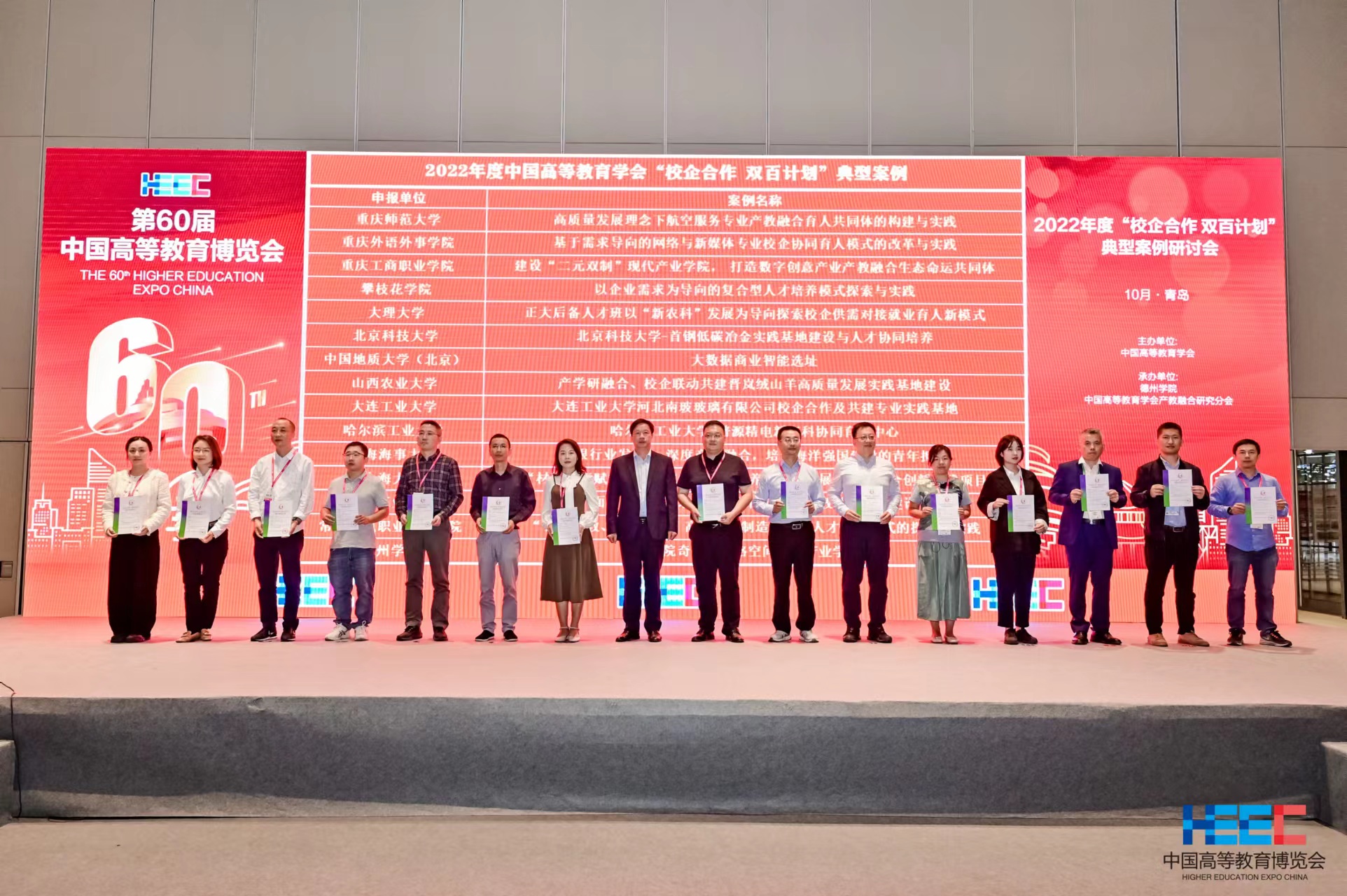 10月13日,中国高等教育学会2022年度“校企合作 双百计划”典型案例研讨会在青岛举行,中国高等教育学会副秘书长吴英策,中国高等教育学会产教融合分会副理事长焦殿成出席,我校党委常委许传华教授应邀参加。